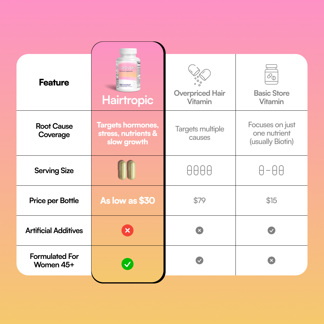 Hairtropic delivers clinical-strength nutrients to target thinning and shedding, but without the massive markup. You get the premium results you expect—thicker, fuller hair—for a fraction of the cost.