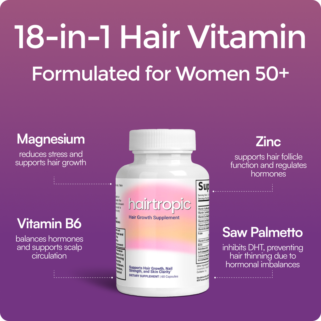 Formulated to support thicker-looking hair and combat shedding in women 50+ — without the celebrity markup.